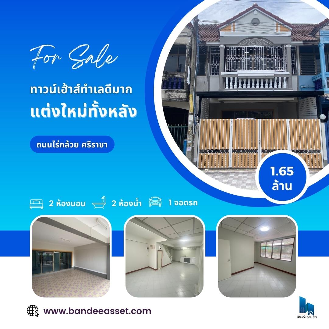 บ้านดีแอสแสท รวมทาวน์เฮ้าส์โซนชลบุรี บ้านสวย รีโนเวท ตกแต่งใหม่ทั้งหลัง อยู่สบาย มีพื้นที่เยอะ ทำเลดี เดินทางสะดวก ใกล้ห้าง ตลาด แหล่งงาน ชุมชนน่าอยู่ ในราคาที่ใครก็เป็นเจ้าของได้